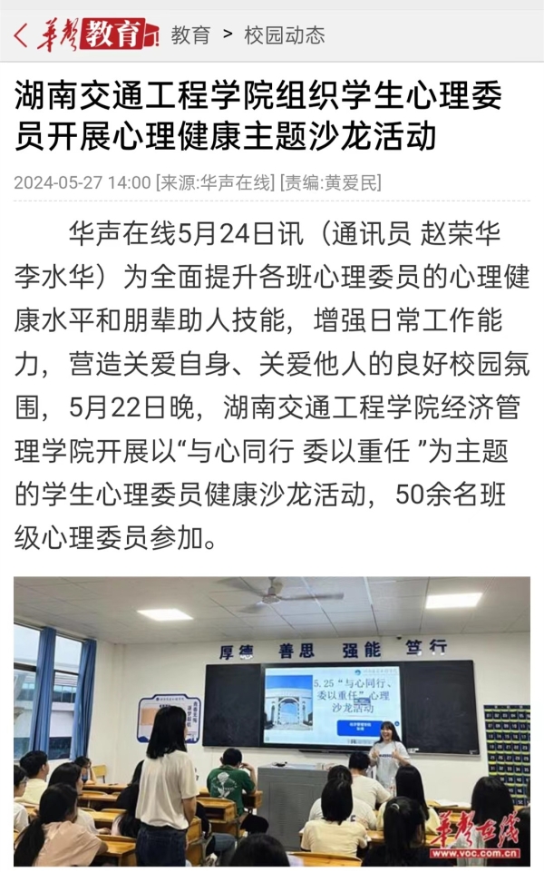 【华声在线】湖南交通工程学院组织学生心理委员开展心理健康主题沙龙活动