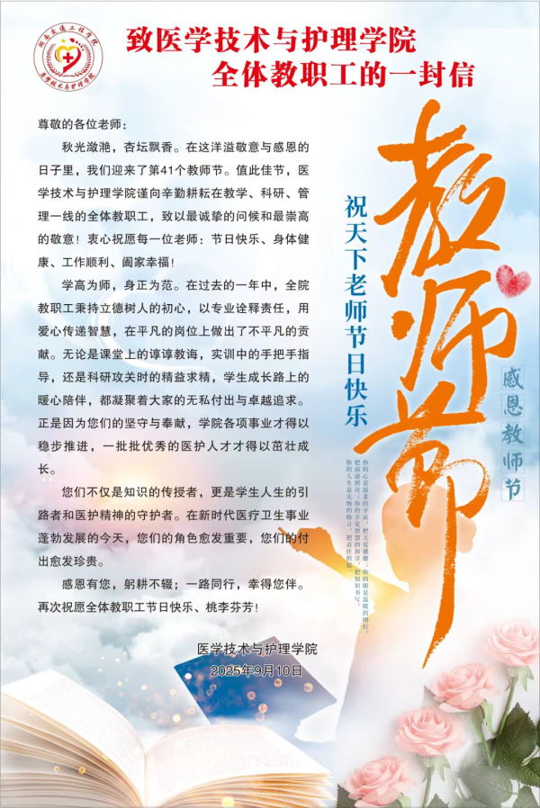 此次座谈会简朴而隆重,不仅弘扬了尊师重教的优良传统,也增强了教师的职业荣誉感、责任感和归属感,激发了教师们投身教育事业的热情与决心。大家纷纷表示,将不忘立德树人初心,以更加饱满的精神状态和扎实的工作业绩,为培养更多高素质医护人才、推动学院各项事业再上新台阶贡献力量
