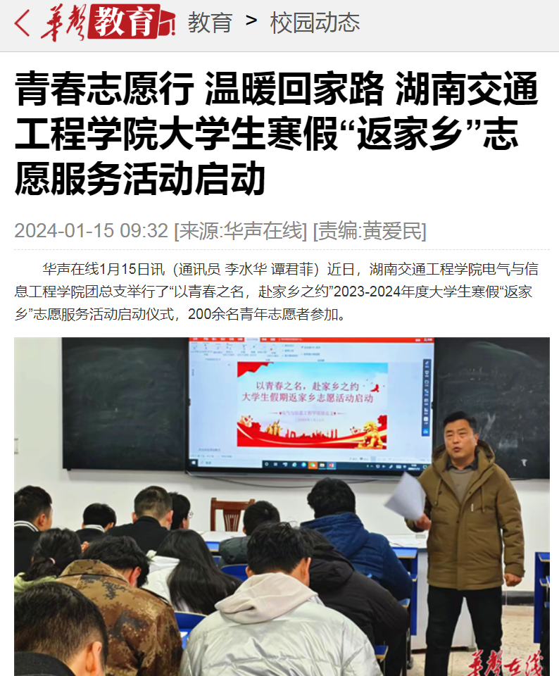 【华声在线】青春志愿行 温暖回家路 湖南交通工程学院大学生寒假“返家乡”志愿服务活动启动