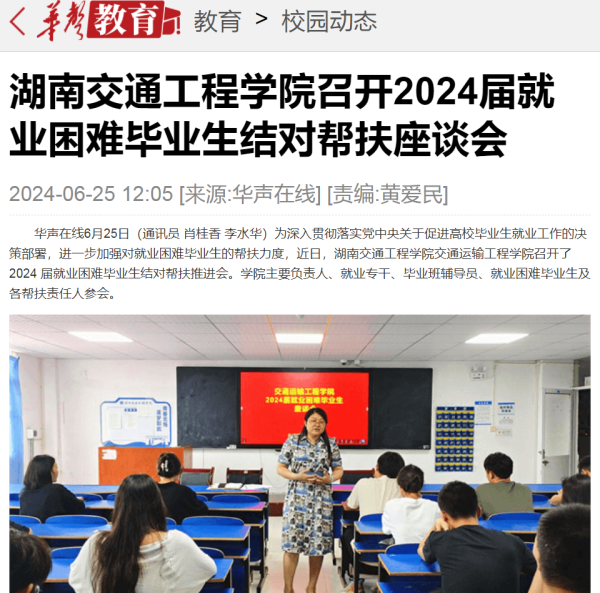 【华声在线】湖南交通工程学院召开2024届就业困难毕业生结对帮扶座谈会