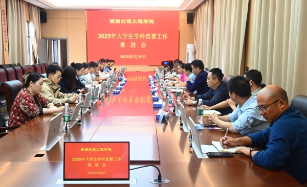 蔡炎斌充分肯定了这几年学科竞赛取得的成绩,并要求进一步提高认识,发挥学校办学特色,整合学科优势资源,强化资源统筹配置,充分利用现有成果及资源平台,持续加强学科赛事组织工作。他指出,学科竞赛是高校育人体系的关键环节与落实立德树人根本任务的重要载体,全校上下要形成更强大的合力,从五个方面推动学科竞赛相关工作:一是更加重视大赛组织工作,将其作为提升学校核心竞争力的战略支点与服务国家创新驱动发展战略的使命担当,统筹资源,构建高效协同的赛事组织体系;二是更加重视前期基础性工作,深化“课程筑基—实践淬炼—竞赛升华”的全链条育人体系,优化课程与实践教学以夯实创新基础;三是要重视项目遴选、培育和团队组织工作,聚焦大赛新导向建立全周期项目管理机制,依托双导师团队提升项目质效并强化团队能力培养;四是要重视竞赛组织体系建设工作,以规则迭代为契机,完善三级管理架构,深化产教融合与校地企协同创新,搭建全流程服务平台;五是要创新学科竞赛模式,深化“两翼驱动”,即以赛促教和以赛促创,全面提升学科竞赛、“挑战杯”、“互联网+”创新大赛等比赛的成绩和水平,进一步扩大学校声誉和影响。他号召全校师生要以“敢闯会创”的精神,全身心投入2025年下阶段备赛和2026年乃至今后一个时期的备赛,力争在各项赛事特别是国家级赛场再展湖南交通工程学院风采。
