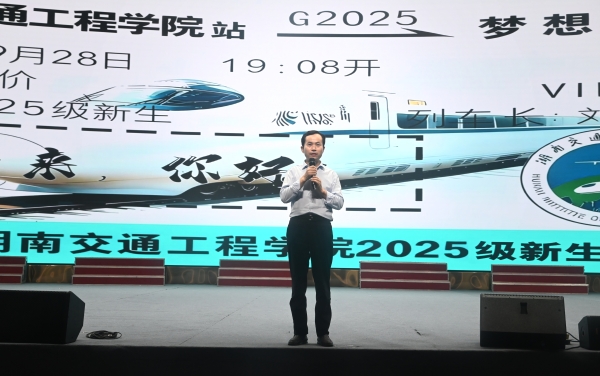 启航仪式上,校党委书记刘文君教授欢迎各位2025级新同学正式成为“湘交院人”,他庄严宣布“G2025次青春列车,现在正式启航!”