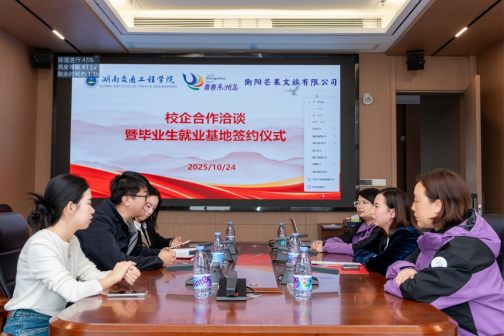 当天下午,人文与艺术学院学生支部书记褚竞昀、李亚男,毕业班辅导员李冰蓉等一行前往衡阳芒果文旅有限公司进行合作洽谈。公司负责人廖燕、蒋文艳、周文静等出席活动,双方就人才培养、实习就业、项目合作等方面进行了深入交流。