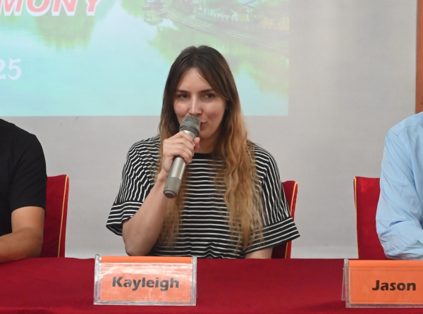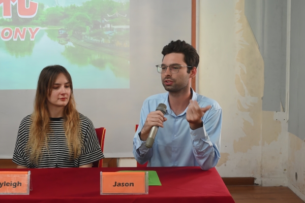 欧达全英文介绍了大学生实训行程安排。他指出,我们的社会实践活动有明确的目标和详细的行程计划,有系统的组织和严格的管理。我们要采访外国友人,举行英语之夜,要开展快乐徒步,对话山水间,考察特色民居文化;让学生走“出去”,把外国人请“进来”,共同举行烧烤晚会,感恩相遇。从知识探索到实践体验的多元安排引发热烈期待。
