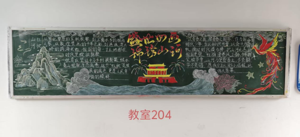 当五星红旗迎风招展,映照着万家灯火的团圆;当明月高悬夜空,承载着华夏儿女的赤诚。为热烈庆祝中华人民共和国成立七十六周年,我校特举办"山河万里映红妆,共贺祖国谱新章"主题黑板报活动,全体同学以笔为媒,以板为卷,共绘家国盛景!