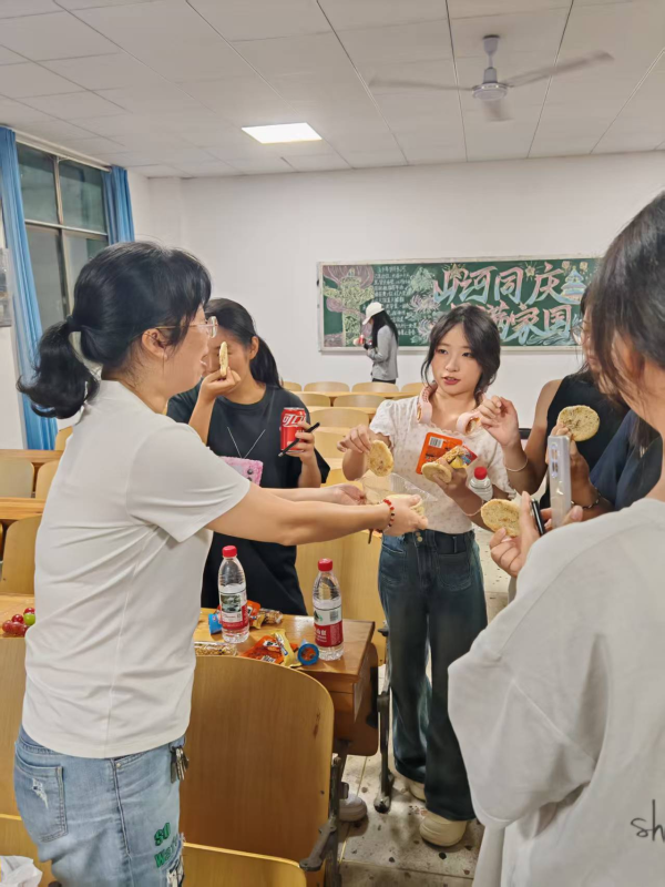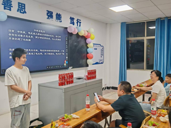 在茶话会游戏环节中,脑筋急转弯式的“猜谜语”考验着大家的智慧与反应,同学们争相抢答,场面热烈;“剥柚子比赛”则趣味横生,大家手脚并用,忙得不亦乐乎;而新颖的“中秋海龟汤”推理游戏更是将气氛推向高潮,奇思妙想的剧情与团队协作的默契相互交织,教室内充满了轻松愉快的笑声。这些精心设计的互动游戏,让每一位同学都沉浸其中,感受到了浓浓的节日喜悦和同窗情谊 。