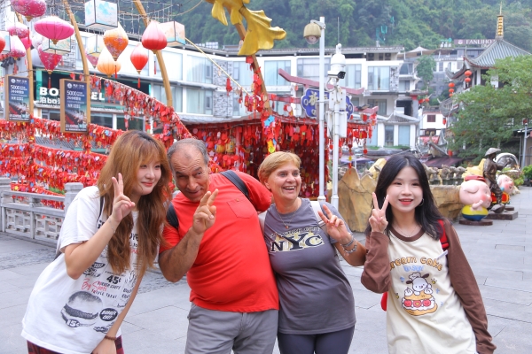 在阳朔欧美达英文书院Jason,Andrew,Kayleigh等外教的带颁下,同学们化身文化交流使者,探访西街,以“感受地球村英语文化”为主题,积极与外国友人展开交流互动,用语言搭建起跨文化沟通的桥梁。同学们通过细致观察西街的英语文化元素,深度挖掘街头英文标识、商户双语交流等鲜活案例,并结合精心设计的社会实践问卷调查,全方位记录西街英语文化的独特魅力。将课堂上积累的语法知识、交际技巧灵活运用于实际对话,从问路点餐到探讨文化差异,每一次开口都是对语言能力的淬炼。“学用结合”的创新模式,不仅为同学们提供了沉浸式语言实践平台,更让英语学习从书本走向生活,切实提升了语言应用能力与跨文化交际素养。
