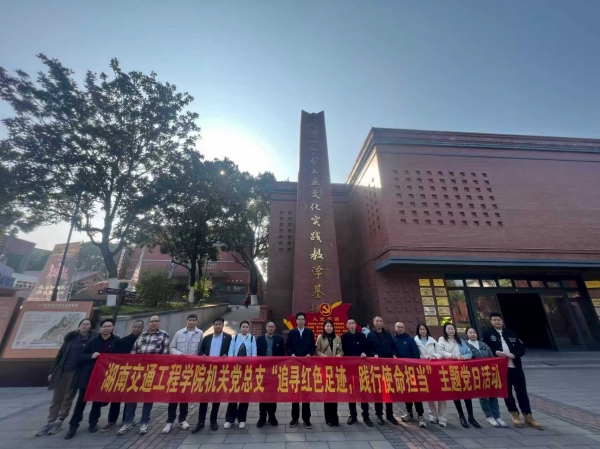 本网讯(通讯员 谢健民 陈燕飞)为深入学习贯彻党的二十大及历届全会精神,巩固拓展主题教育成果,激励机关党员干部赓续红色血脉、强化使命担当,12月6日至7日,湖南交通工程学院机关党总支组织全体党员赴郴州711矿、邓中夏故居、湘南年关起义指挥部旧址等地,开展“追寻红色足迹,践行使命担当”主题党日活动。活动通过实地参观、现场教学、重温入党誓词等形式,引导党员干部深刻感悟革命先辈的崇高精神,汲取奋进力量。