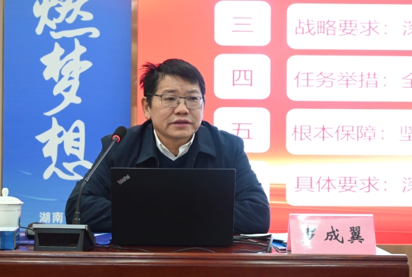本网讯(通讯员 赵红深 李水华 摄影 邓翔 胡子婷)为深入学习贯彻党的二十届四中全会精神,统一思想认识,凝聚奋进力量,12月26日下午,学校在航母办公楼101会议厅举行党的二十届四中全会精神宣讲暨党委理论学习中心组(扩大)2025年12月集体学习。湖南第一师范学院党委书记罗成翼受邀作党的二十届四中全会精神专题宣讲。学校党委理论学习中心组全体成员,全体校领导,党务部门主要负责人,各二级党组织书记、副书记,以及全体思政课教师、辅导员与学生代表参加学习。校党委书记刘文君主持。
