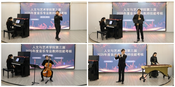 为进一步促进青年音乐教师苦练基本功,不断提高专业水平和教学技能,人文与艺术学院于12月29日——30日举行2025年度音乐专业教师技能考核。全院45周岁以下的青年音乐教师、40周岁以下的青年舞蹈教师共62人全部参加专业考核。