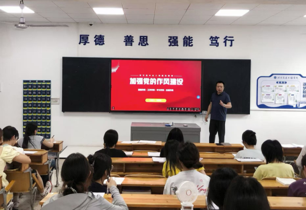 党总支副书记刘建军重点阐述了"锤炼党性修养 永葆政治本色"的深刻内涵。他强调,作风建设要从思想源头抓起,学生党员要自觉抵制形式主义、官僚主义等不良倾向,用扎实的行动带动身边同学共同进步。