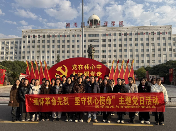 为传承红色基因,深入学习贯彻党的二十届四中全会精神,2025年12月20日至21日,湖南交通工程学院医学技术与护理学院党总支部组织全体在校师生党员及学生代表共48人,赴永州开展“缅怀革命先烈,坚守初心使命”主题党日活动,在红色地标中感悟初心使命,锤炼党性修养。