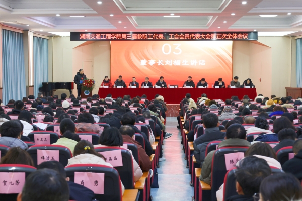 本网讯(通讯员 赵红深 李水华 摄影 邓翔)伴着对新年的希冀与憧憬,1月22日,湖南交通工程学院第三届第五次教职工代表暨工会会员代表大会在航母楼101会议室胜利召开。学校董事会、监事会领导,学校党政领导,各二级学院(部)和职能部门代表出席大会。