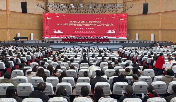 党委书记刘文君首先作新春致辞,代表学校向全体教职工致以诚挚的问候和新春的祝福。他指出,“新春第一会”不仅是调整状态的“收心会”,更是全年工作的“风向标”,对于提振精神、走稳走实高质量发展之路具有重要意义。他回顾了过去一年的奋斗历程,指出全校上下始终坚持党建引领办学治校全过程,紧扣立德树人根本任务,锚定交通特色办学方向,凝心聚力、攻坚克难,顺利通过教育部本科教学工作合格评估,在学科建设、教学改革、学生就业创业、社会服务等方面取得了一系列亮眼成绩,为学校长远发展奠定了坚实基础。他强调,2026年是国家“十五五”规划实施的开局之年,是教育强国建设向纵深推进的攻坚之年,是湖南加快建设教育强省、奋力推进“三高四新”美好蓝图实现的重要之年,也是学校深化内涵建设、攻坚突破发展的关键之年。立足新起点,面对新形势,针对新学期工作,他明确提出四点要求:一要坚守立德树人根本,筑牢人才培养根基;二要强化内涵发展核心,提升办学治校质效;三要凝聚干事创业合力,扛起服务大局使命;四要深化作风建设保障,树立实干实绩导向。动员全体教职工以“闯”的魄力、“创”的劲头、“干”的作风,把发展的蓝图转化为实干的行动,把奋斗的目标落实为具体的成效。