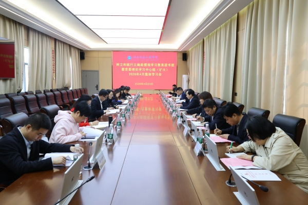 本网讯(通讯员 李水华 摄影 邓翔)为深入学习贯彻习近平总书记关于树立和践行正确政绩观的重要论述,推动学习教育走深走实、见行见效,4月23日下午,学校在航母办公楼四楼会议室举办树立和践行正确政绩观学习教育读书班暨党委理论学习中心组(扩大)2026年4月集体学习会。全体校领导、党委委员、党务部门负责人、二级党总支书记及直属党支部书记参加会议。校党委书记刘文君主持会议并作总结讲话。